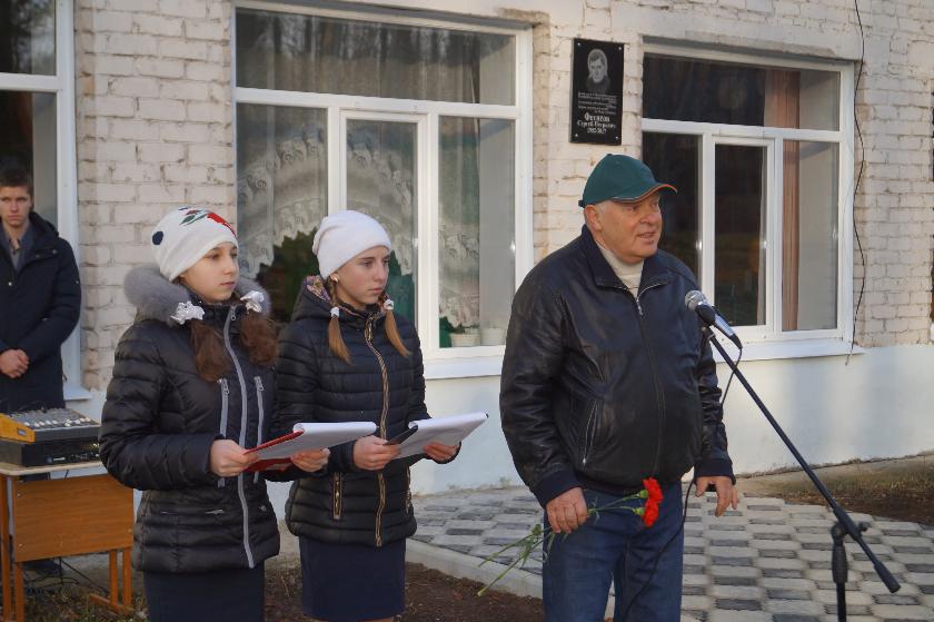 Право открыть мемориальную доску предоставили внучке Сергея Петровича Алёне Фетисовой, тоже ученице этой школы.