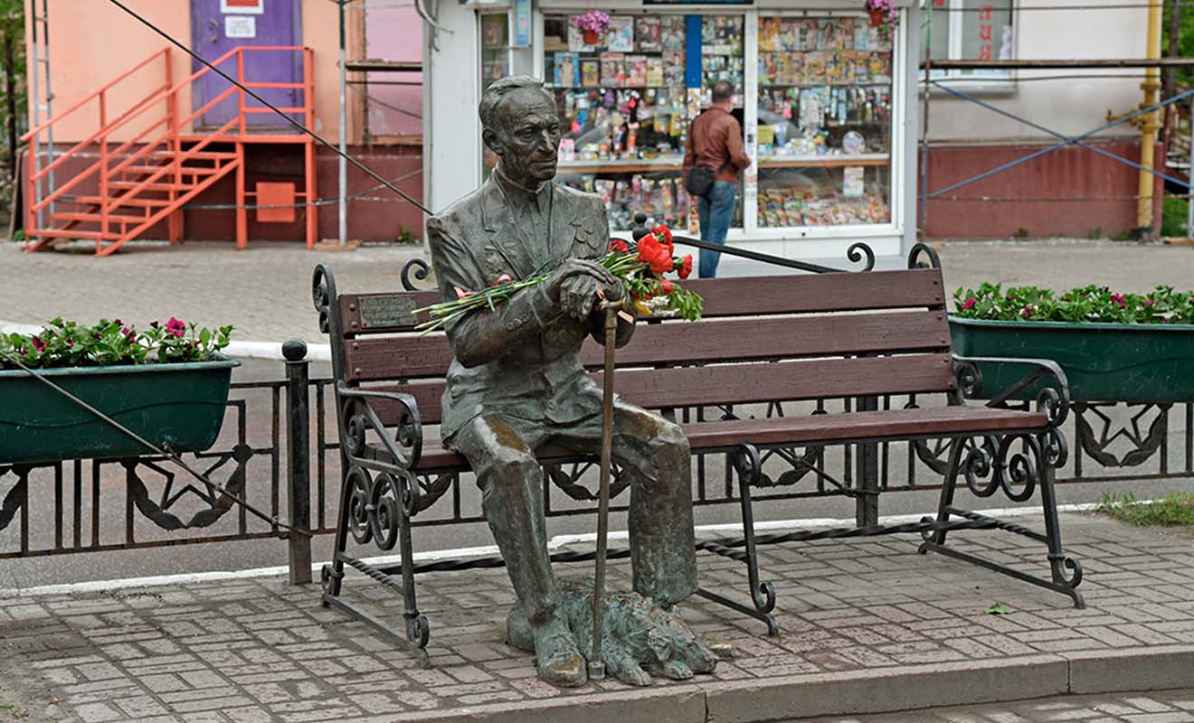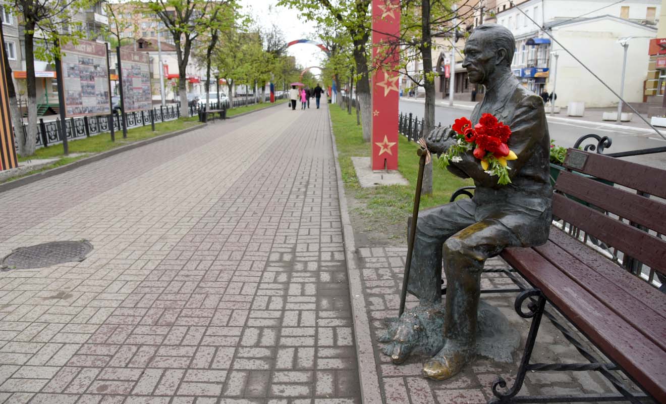 В Калуге, на аллее на улице Кирова, неподалеку от площади Победы, скромно присел на скамеечку пожилой человек с тросточкой. На пиджаке – многочисленные награды, в ногах – верный пес. Это бронзовая скульптура ветерана, символ нашей памяти о людях, защитивших Родину от фашизма. Собирательный образ героев войны, которые всю свою мирную жизнь возрождали освобожденную страну и завещали нам беречь и страну, и свободу.