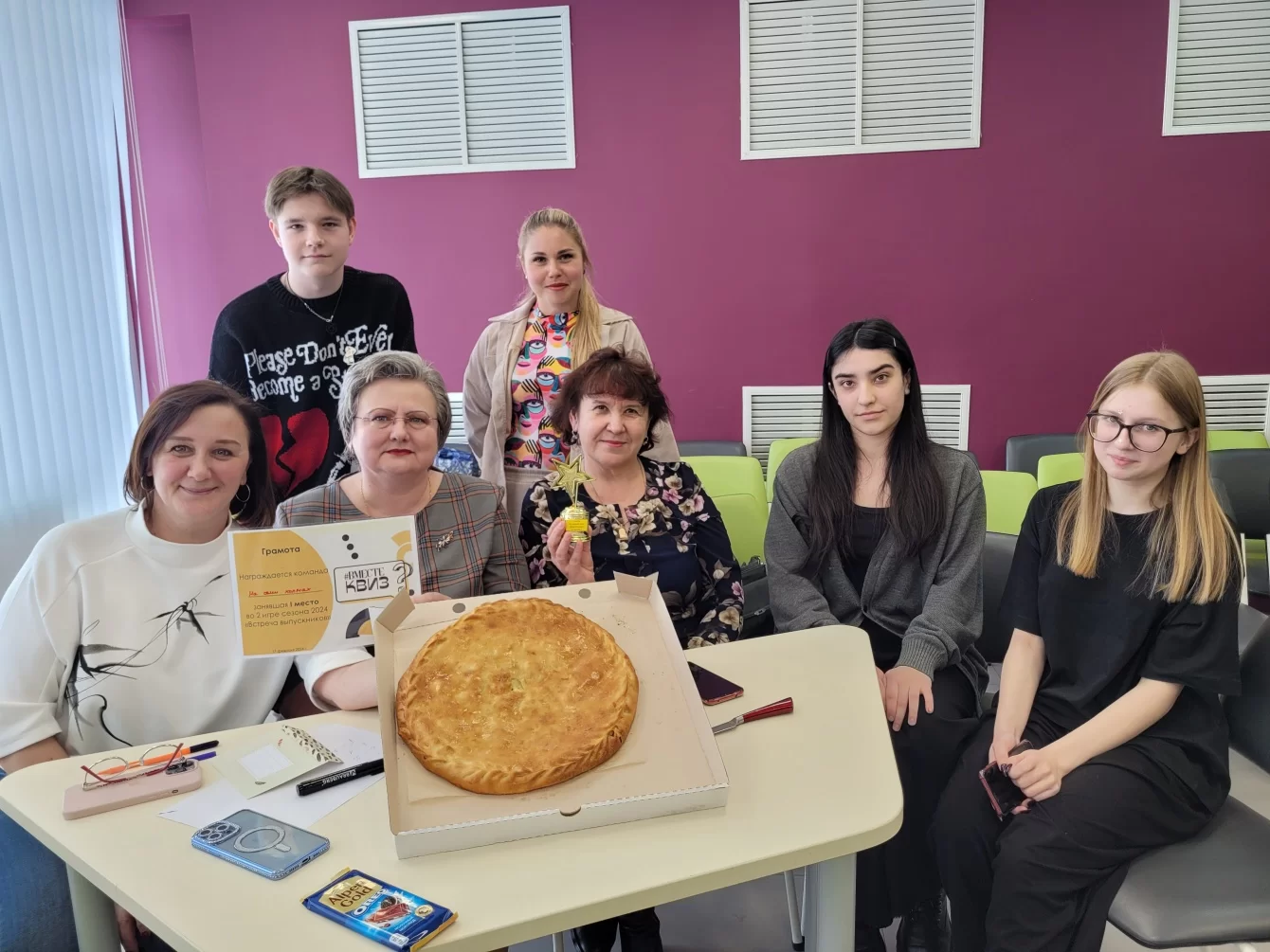 Команды с нетерпением ждали новой викторины и на вторую игру привели с собой родственников и друзей, поэтому в этот раз участников стало больше. #ВМЕСТЕКвиз с названием «Встреча выпускников» прошла под тематикой школы и всего, что с ней связано.