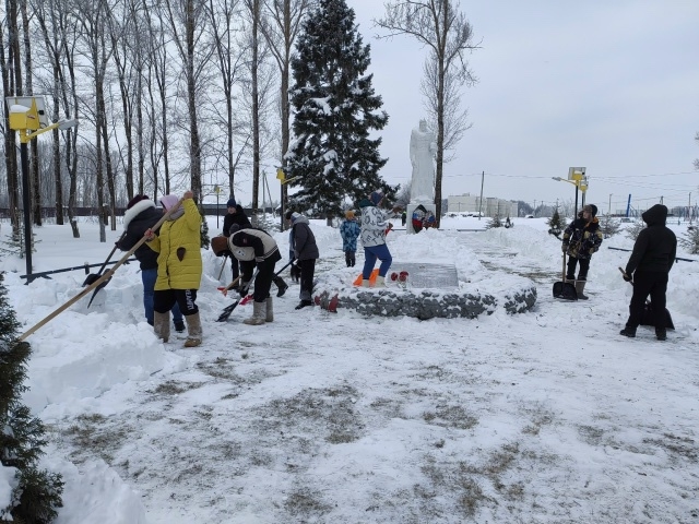 А в райцентре на расчистку снега у памятника откликнулись активисты первичного отделения Движения Первых и учащиеся школы. Они не только очистили прилегающую к памятнику территорию, но и решили взять шефство над памятниками павших героев Великой Отечественной войны с января этого года.