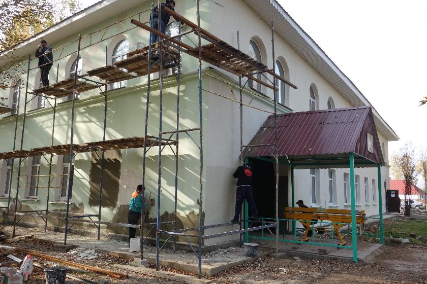 Работы запланированы масштабные, поэтому разбиты на два этапа – ремонт будет идти и в следующем году. Сейчас, пока погода позволяет, идут работы по ремонту фасада и отмостки.