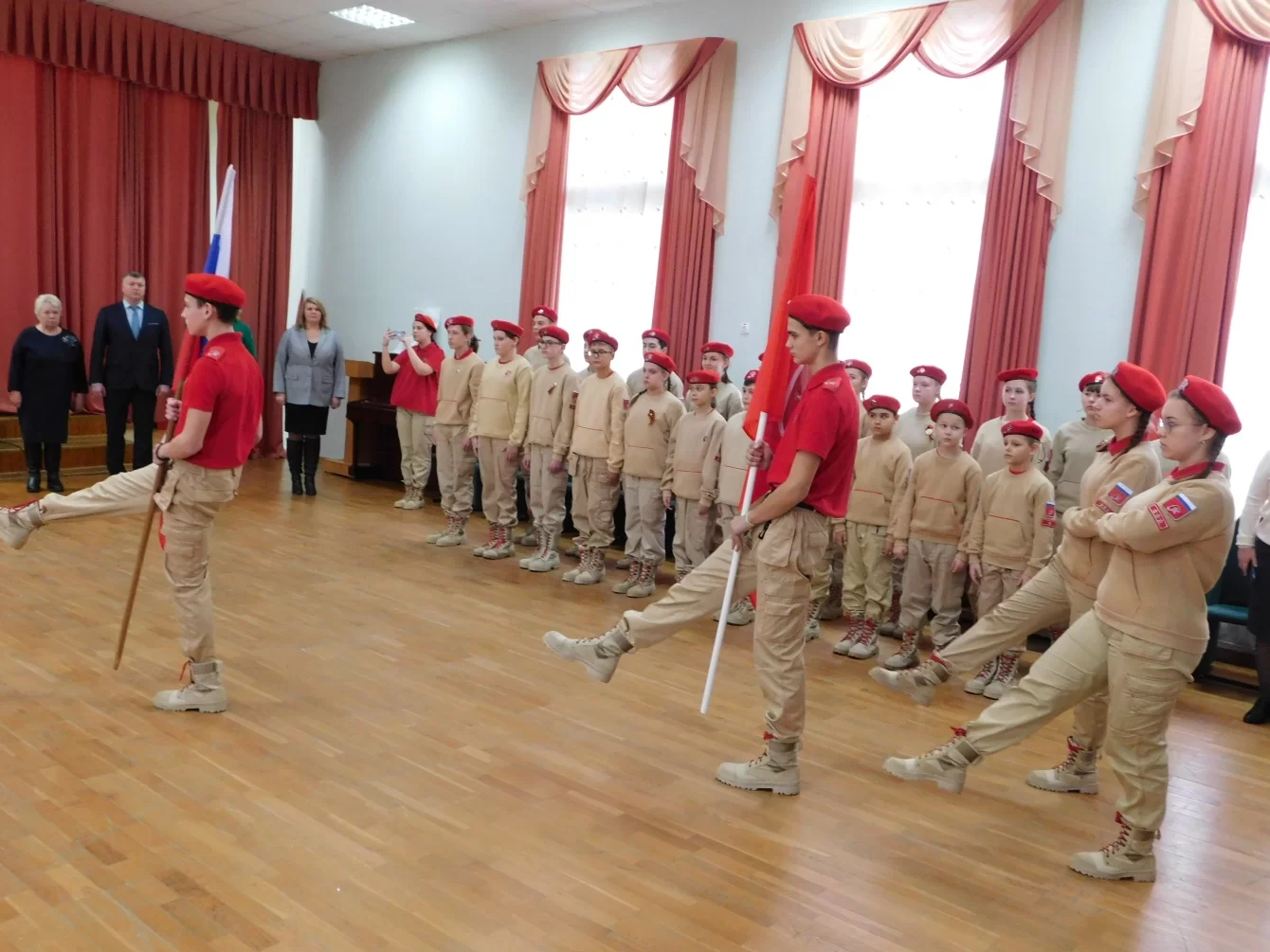 Мероприятие состоялось в актовом зале школы №1 поселка Полотняный Завод.После торжественного вноса знамени юнармейского объединения и исполнения Гимна будущие юнармейцы дали клятву на верность Отечеству и юнармейскому братству, после чего им вручили значки и специальные удостоверения.