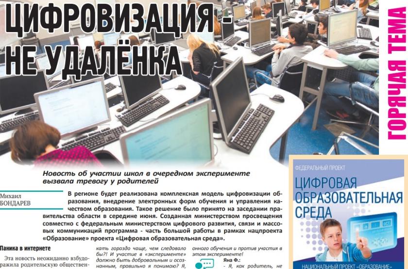 Новость об участии калужских школ в федеральном эксперименте по цифровизации образования вызвала тревогу у родителей. У калужан этот проект ассоциируется с переходом на дистанционное образование, просиживанием ребенка дома за компьютером. В региональном профильном ведомстве поспешили успокоить – форма учебного процесса не изменится, с 1 сентября дети вернутся в классы. А «Цифровая образовательная среда» - элемент всех развитых мировых систем образования, включающий высокоскоростной интернет в школах, обеспечение соответствующей техникой. Как в области будет проходить эксперимент читайте в материале Михаила Бондарева «Цифровизация - не удалёнка».