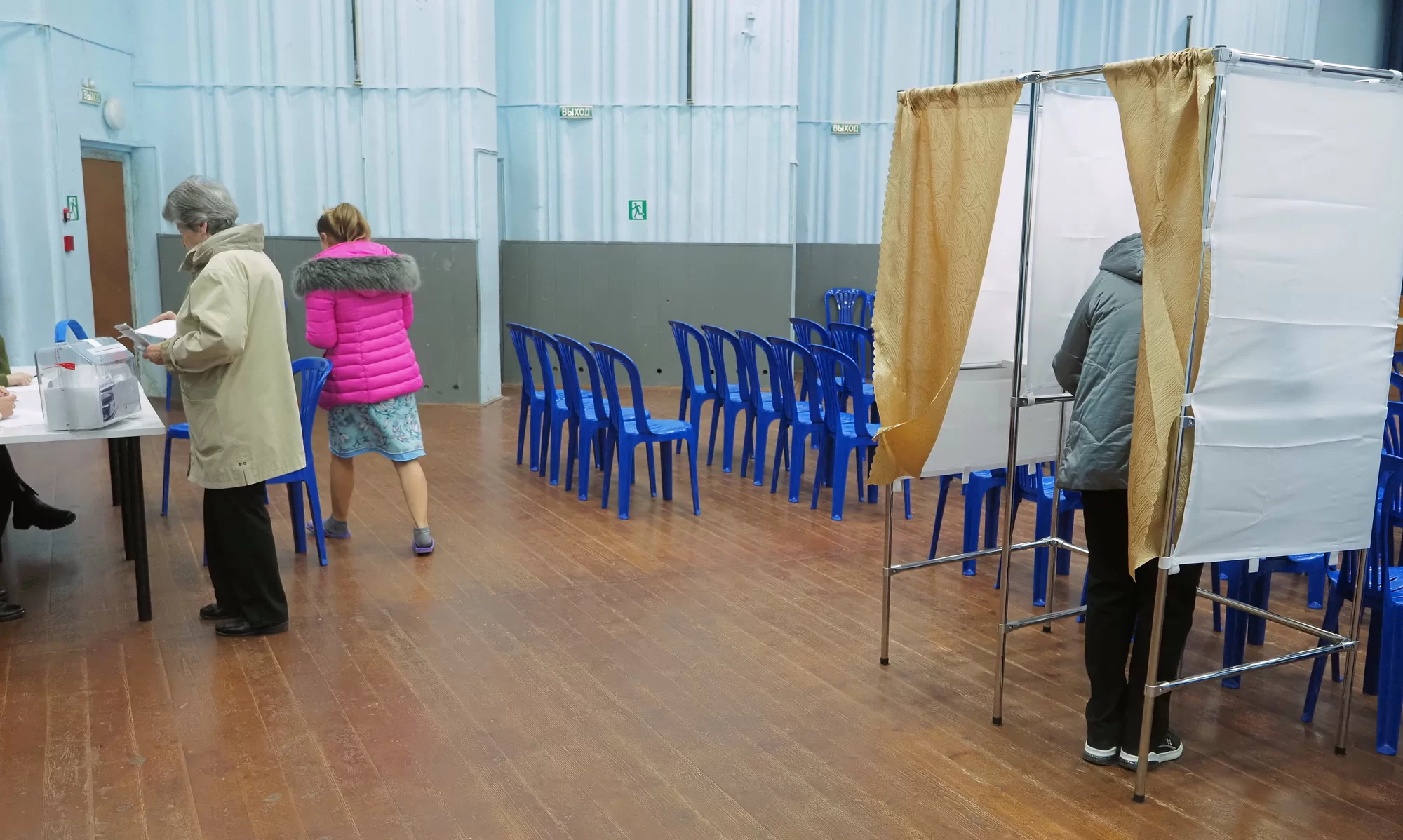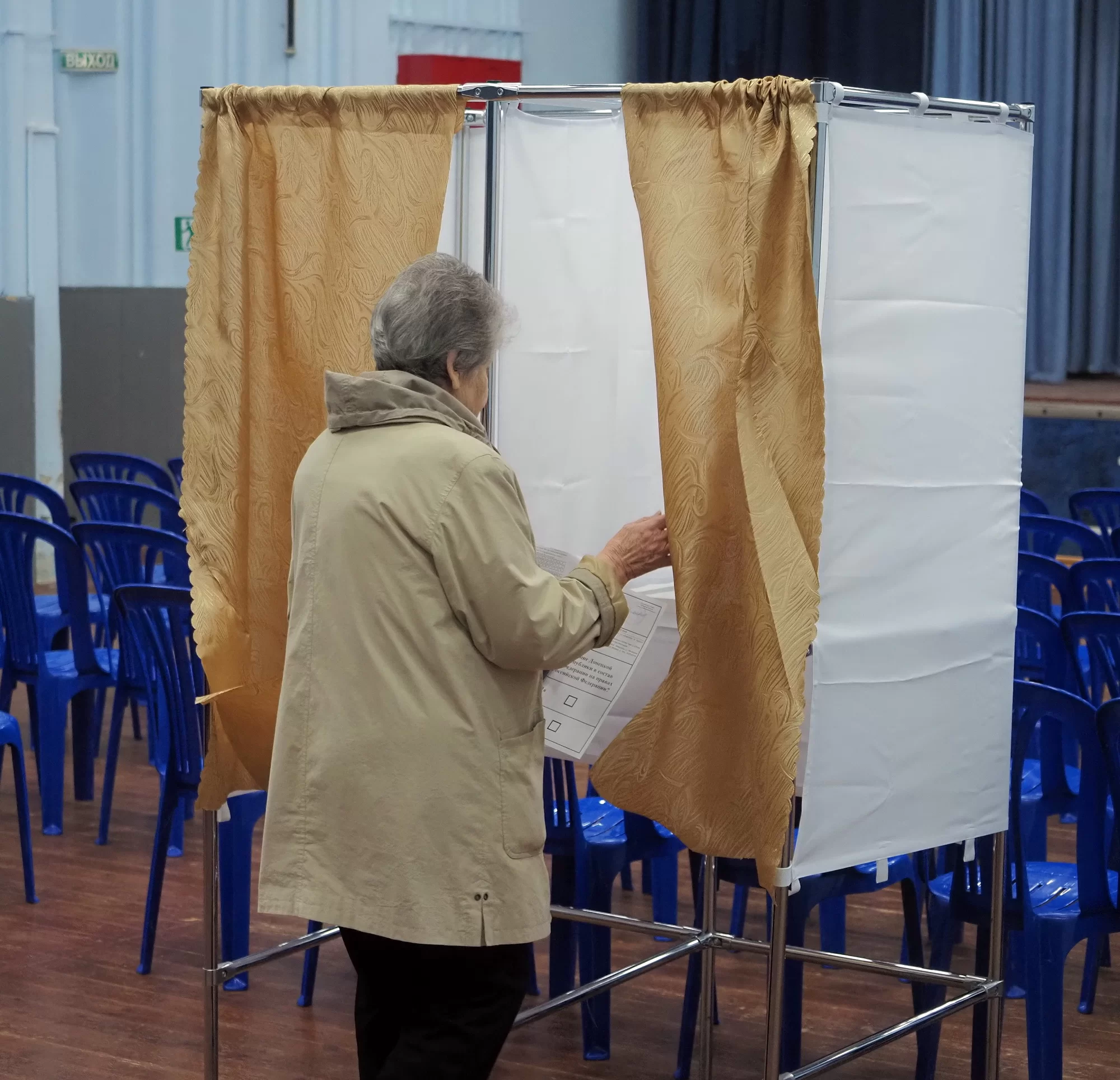 К 15.00 в конференц-зале санатория было уже все организовано для выездного голосования. Члены участковой избирательной комиссии установили кабину для голосования, столы для сверки списков и переносную урну для бюллетеней. Избиратели подходили довольно активно. Практически каждую минуту у столов для сверки списков кто-то находился.