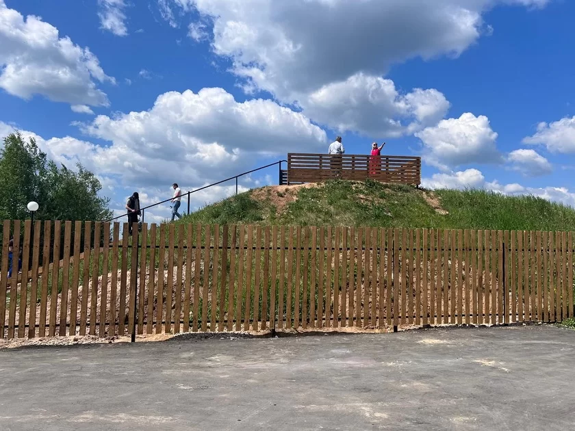 В результате здесь на возвышенности оборудована смотровая площадка со ступеньками к ней. Вокруг площадки сделано ограждение. От смотровой площадки к спортивному комплексу построена 240-метровая плиточная пешеходная дорожка. Вдоль нее установлены торшерные светильники, а также появилось ограждение между контейнерной площадкой и территорией спортивного комплекса, на проезде до контейнерной площадки уложен асфальт.