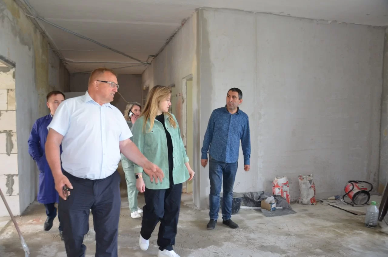 Внутри учебного учреждения отделочные работы еще в разгаре, но уже невооруженным глазом заметны перемены. В помещениях демонтированы полы и залито основание под новое покрытие. В процессе работ – выравнивание стен под последующее окрашивание.