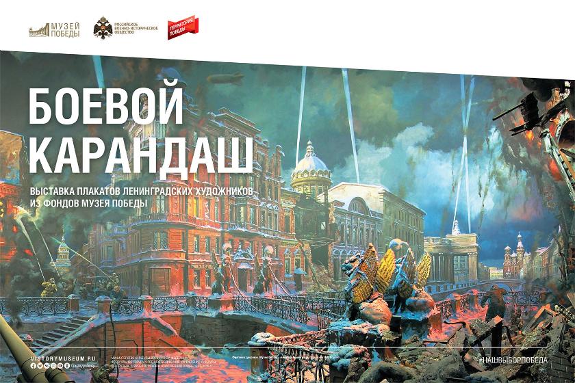 В экспозиции представлены плакаты времен Великой Отечественной войны. Посетители могут познакомиться с работами военных художников из одноименного творческого объединения «Боевой карандаш», действовавшего в Ленинграде в 1939-1945 годах и выпускавшего агитационные плакаты и сборники сатирических рисунков.