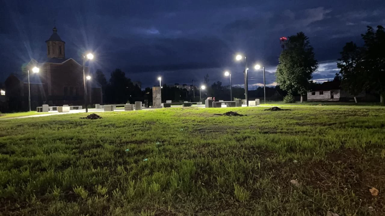 Специалисты уложили в сквере плитку на центральной площадке и пешеходных дорожках, смонтировали освещение, установили скамейки и урны, а также озеленили прилегающую территорию. В центре сквера установлена стела в память о павших в годы Великой Отечественной войны, погибших в Афганской и Чеченской войнах, не вернувшихся бойцов специальной военной операции.