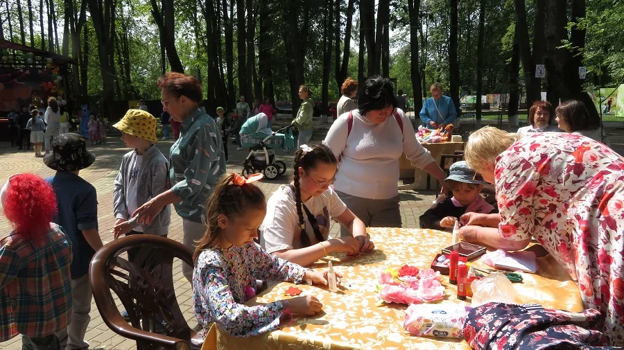 В излюбленном месте отдыха взрослых и детей работали сразу несколько интерактивных площадок: игровая, танцевальная и спортивная. Здесь же преподаватели детской школы искусств проводили мастер-классы по вязанию, оригами и изготовлению цветов из лоскутков ткани. Детишки мастерили и веселились от души.