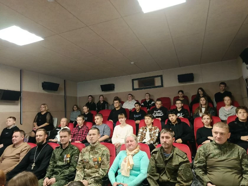 На встрече присутствовали заместитель главы районной администрации Дмитрий Крисаненков, настоятель Спас-Деменского храма Преображения Господня иерей Дмитрий Ванифатов, социальный координатор фонда «Защитники Отечества» Виктория Гурьянова, участники специальной военной операции и учащиеся школ №1 и №2.