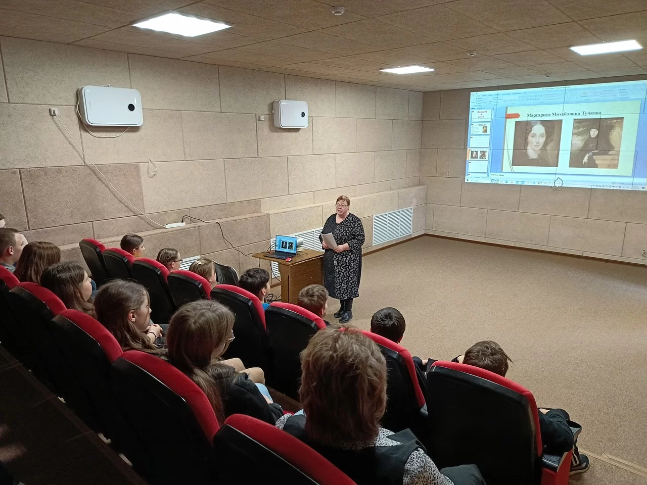 Экскурсовод центра Ирина Агеева напомнила школьникам о подвигах, мужестве и отваге русских женщин, принимавших участие в военных событиях. Школьники узнали много интересного о судьбах таких героинь как Надежда Дурова, Маргарита Тучкова, Лидия Литвяк, Евдокия Никулина, которые стали ярким примером беззаветного служения Отечеству. Особое внимание на вечере памяти было уделено подвигам женщин-современниц, принимающих участие в специальной военной операции. Рассказ о героических женщинах сопровождался показом видеороликов из документальных и художественных фильмов.