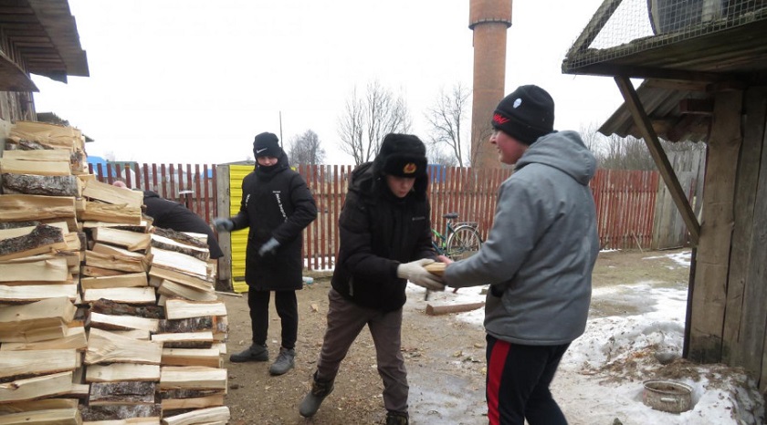 В мероприятии приняли участие почти четыре десятка человек. Выстроившись в длинную цепочку, добровольцы аккуратно передавали поленья до сарая. Ребята трудились слаженно и на совесть, поэтому с работой справились за полтора часа, уложив машину твердого топлива в ровную поленницу.