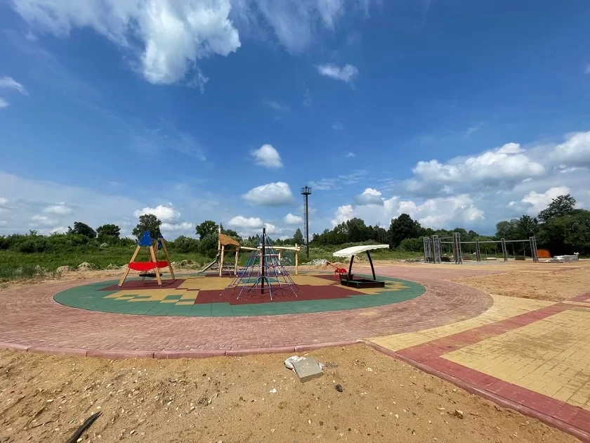 В рамках программы «Формирование комфортной городской среды» нацпроекта «Инфраструктура для жизни» три подрядчика создают новое место отдыха в райцентре. Специалисты уложили больше тысячи квадратных метров брусчатки, 300 квадратных метров резинового покрытия и залили монолитную плиту площадью 364 квадратных метров — здесь появятся уличные тренажеры. Реализация этого проекта обошлась в три миллиона рублей.