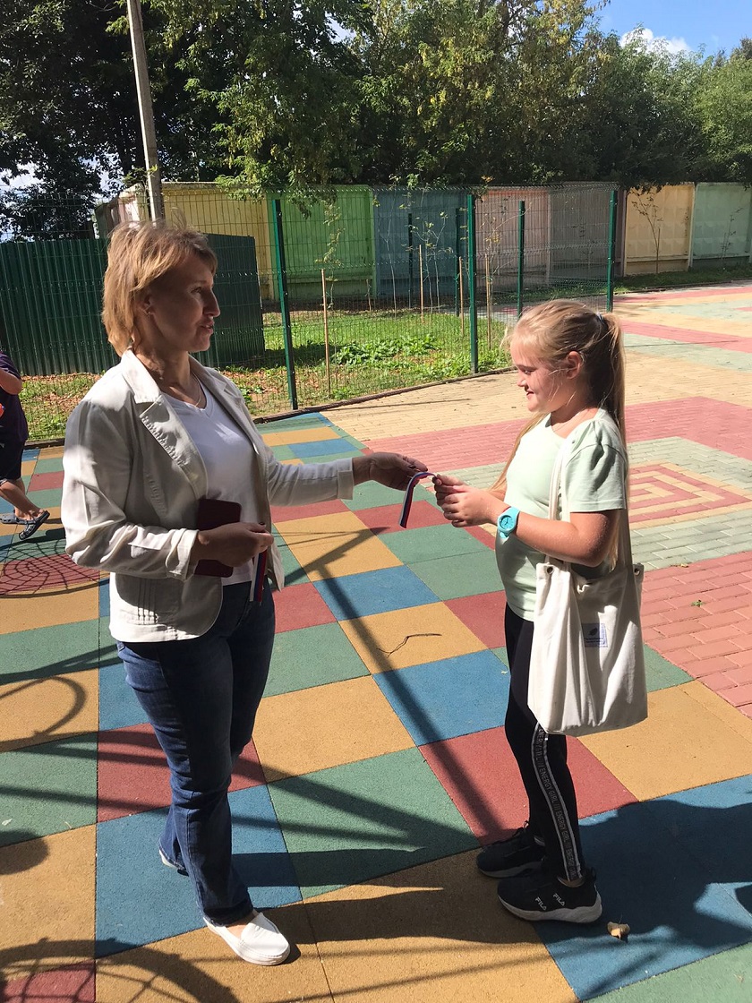 Сотрудники отдела по делам семьи, молодежи, спорта и трудовых отношений организовали и провели акцию "Ленточка триколор". Они раздавали прохожим на главных улицах города ленточки с государственной символикой, а также бумажные сердечки в цветах триколора.