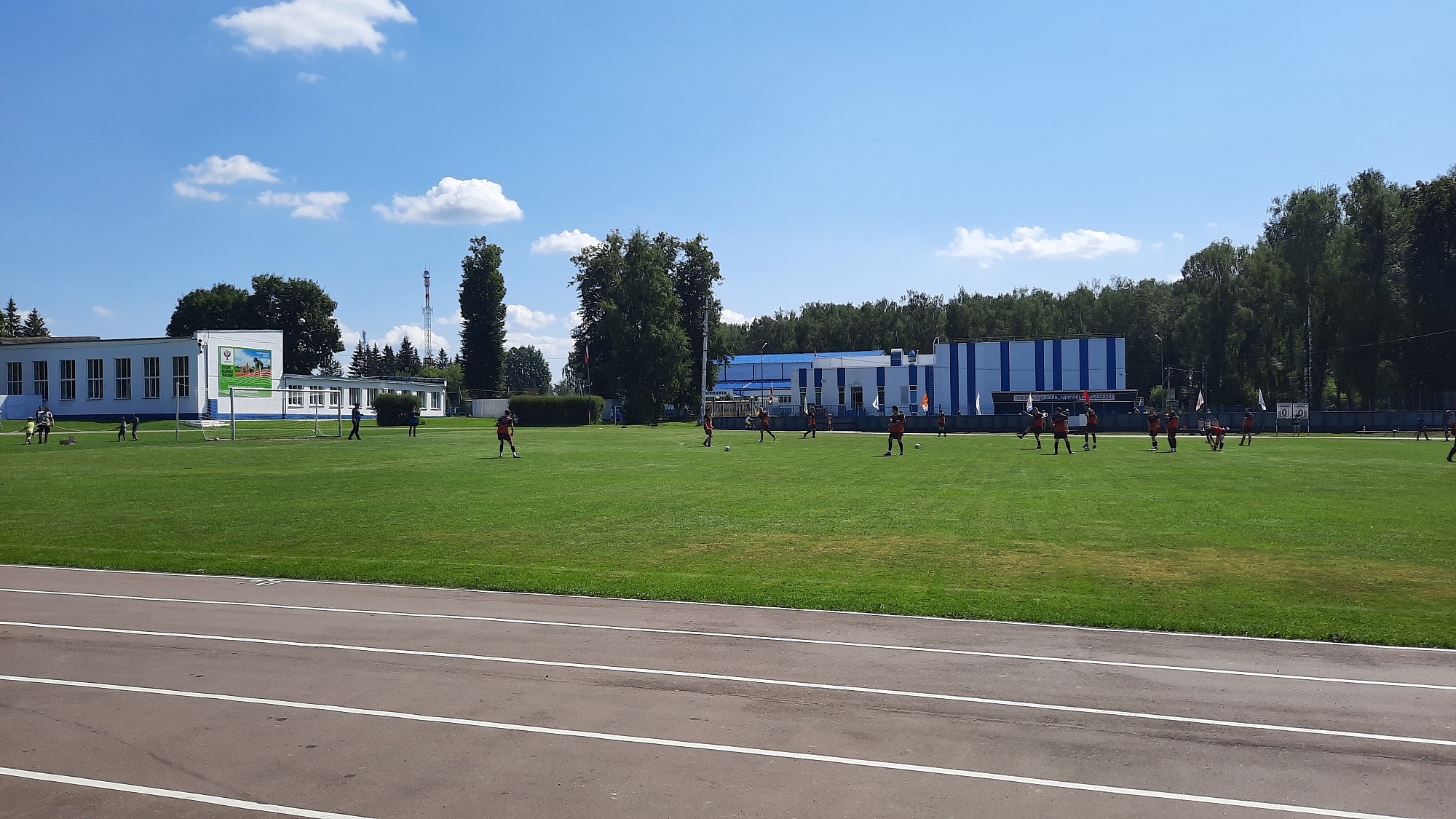 На городском стадионе в честь праздника прошли различные спортивные соревнования, в том числе первенство области по футболу в зачёт летней спартакиады среди муниципальных образований.