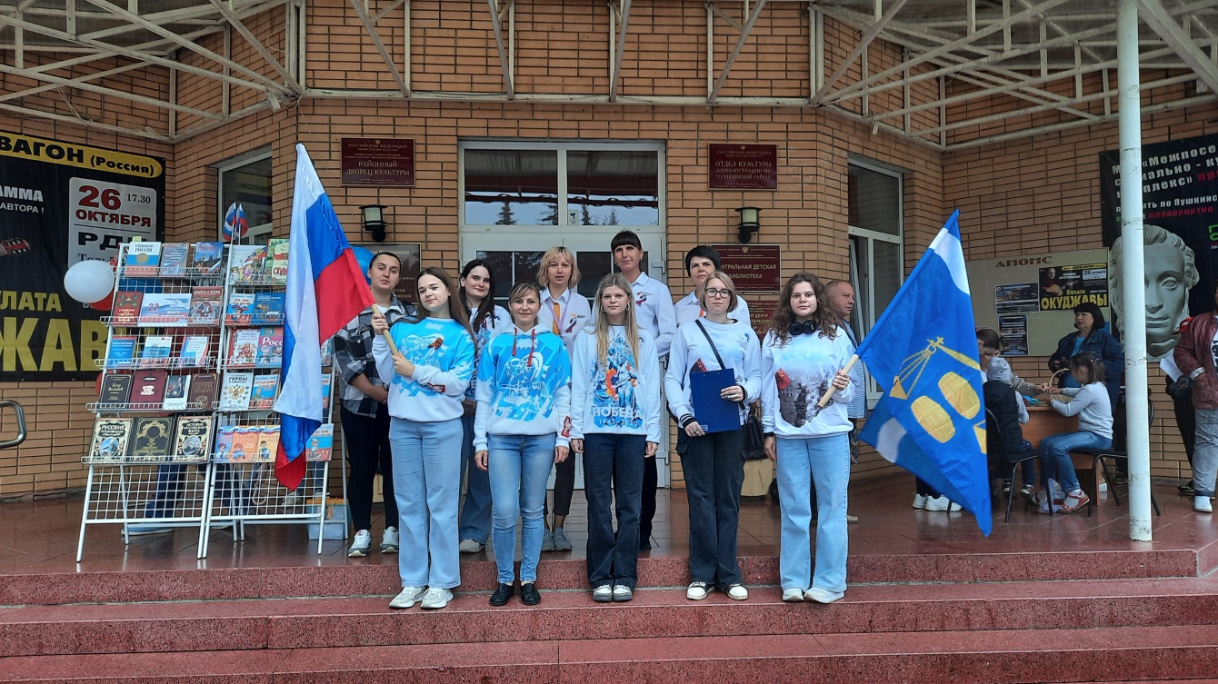 В честь праздника сухиничанам раздавали отрезы ленты цвета триколор и буклеты с информацией о российской символике и её истории. В то время как взрослые отвечали на вопросы юные горожане принимали участие в организованном библиотекарями мастер-классе по изготовлению книжной закладки в виде маленького флага.