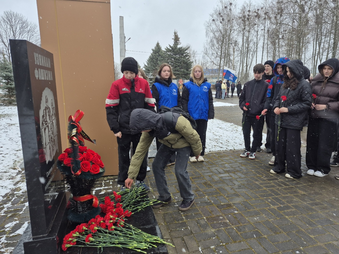 Горожане возложили цветы к мемориалу и погрузились в скорбь в минуту наступившей тишины.