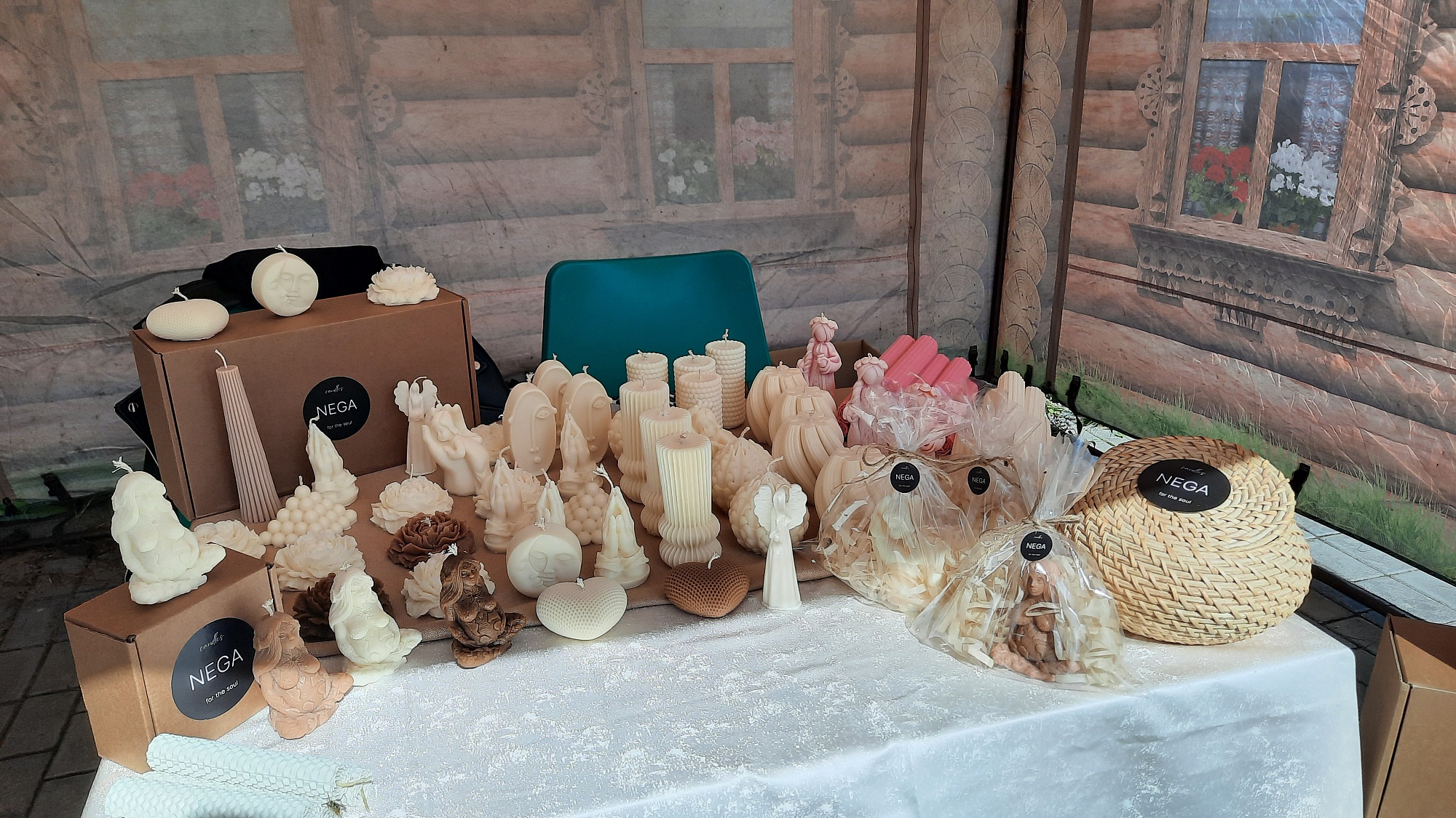Вдоль центральной аллеи расположилась ярмарка мастеров Калужской области. Они представили множество стильных товаров, в том числе собственноручно сшитую спортивную и повседневную одежду, декоративные свечи, подарочное мыло, изделия из дерева, украшения из полимерной глины, эпоксидной смолы, бусин и бисера и многое другое. А ещё здесь можно было продегустировать и приобрести молочную продукцию бренда «Сыр да масло» производства сухиничанки Натальи Мысликовой.