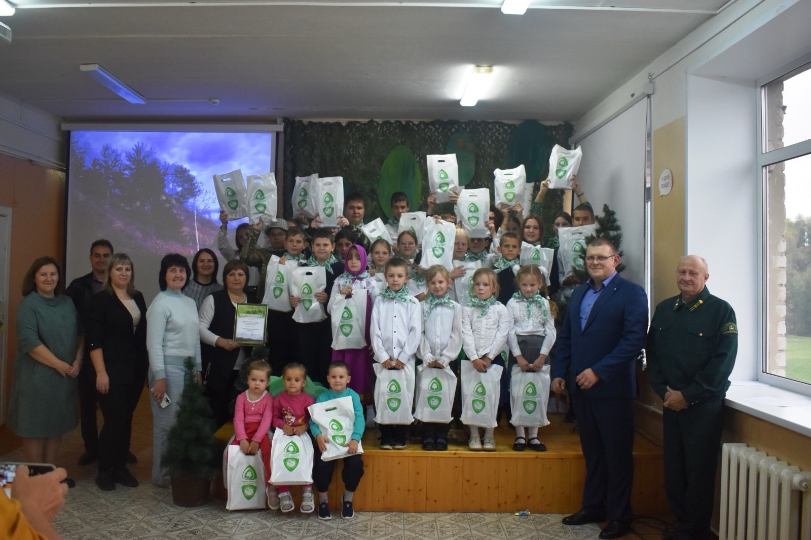 На праздничном мероприятии присутствовали исполняющий обязанности заместителя министра природных ресурсов и экологии Калужской области Владимир Тимаков, методист Калужского областного эколого-биологического центра Светлана Глебова, исполняющий обязанности директора государственного учреждения «Мещовское лесничество» Иван Коста и лесничий дабужского участка Сергей Макаркин, взявший шефство над новым школьным сообществом.