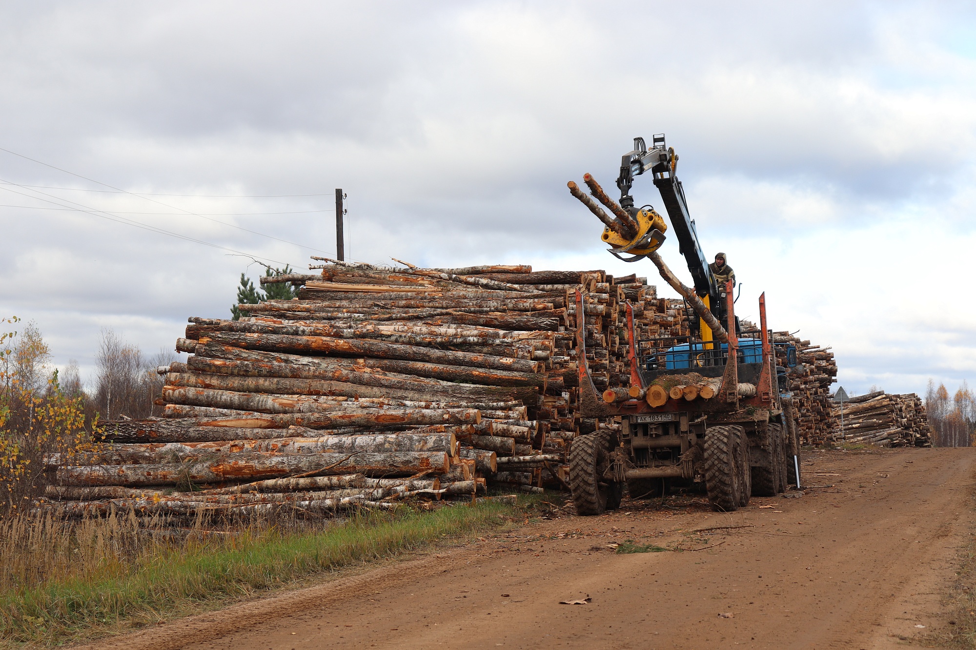 Мещовский район богат лесными угодьями. Большой их массив находится в ведении Подкопаевского участкового лесничества, где во все времена велась заготовка древесины. И как подтверждение этому за деревней Ломтево по обе стороны дороги образовался «склад» бревен, судя по внешнему виду, далеко не первой свежести. Следы заготовительной деятельности в виде отдельно валяющихся деревьев, небольших кучек и объемных штабелей лесоматериалов сопровождали нас на протяжении всего пути. Но в сравнении с тем, что увидели мы дальше, это были цветочки.