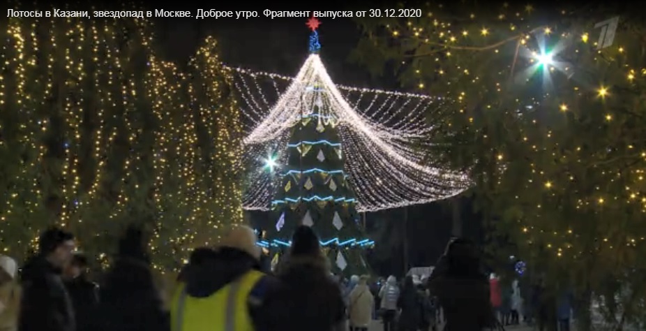 Столичные коллеги показали сказочное убранство Москвы, Казани и Калуги: светящиеся арки, медведи и лотосы, сверкающее звездное небо и, конечно, хозяйки праздника — новогодние ели. В сюжет Первого канала попала и наша зеленая красавица, установленная в Центральном парке культуры и отдыха. Калужскую ёлку столичные репортёры назвали космической, правда, перепутали расположение, переместив ее в репортаже на площадь Старый торг.