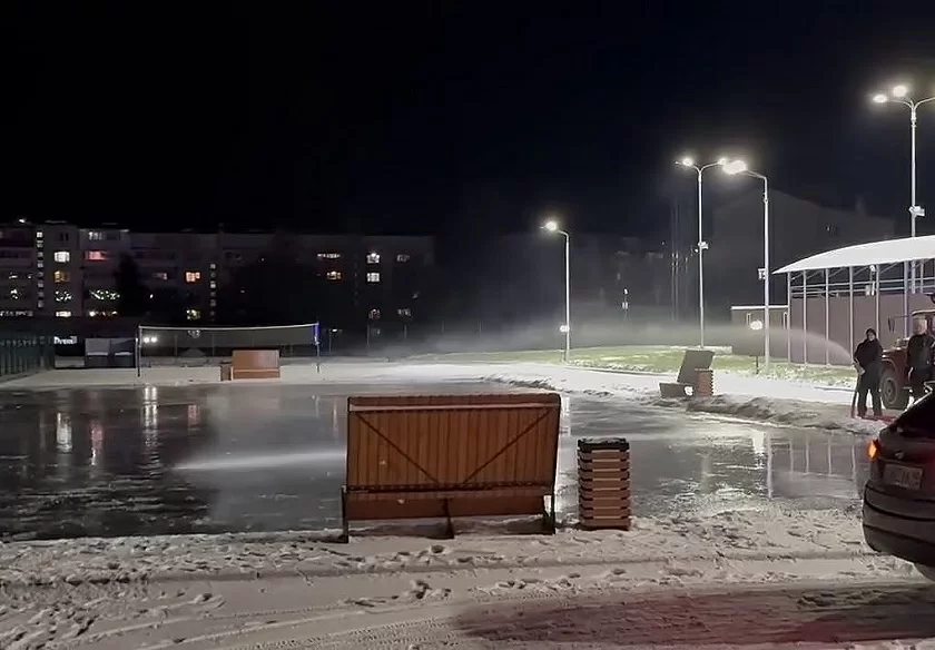 Воду льют на бетонированную спортивную площадку, где специально были предусмотрены небольшие бордюры. В тёплое время года здесь катаются на велосипедах и роликах. Теперь пространство 40 на 23 метра превратится в городской каток. Как сообщили в спортшколе «Лидер», работать он будет каждый день с 8 до 10 вечера. Вход свободный.