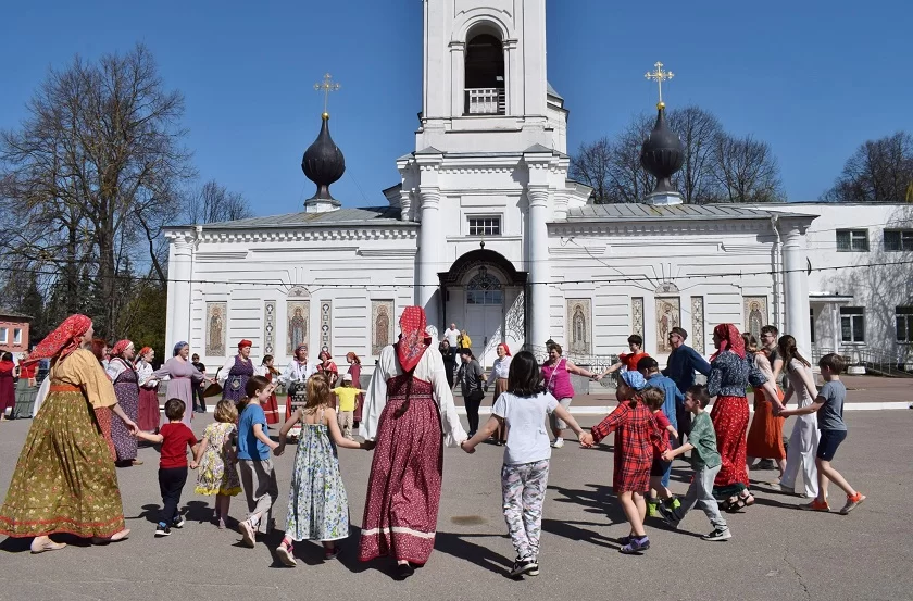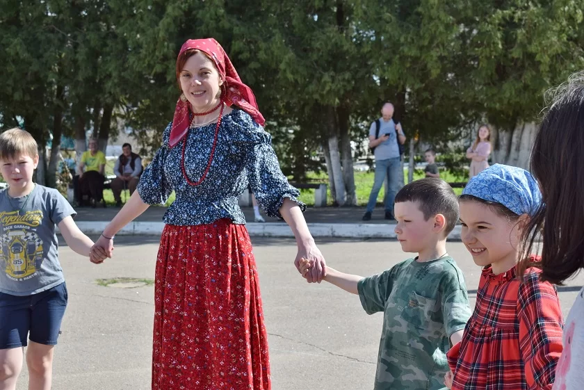 Дети и взрослые водили хороводы и играли в русские народные игры.