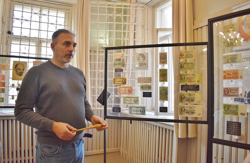Выставку «Эволюция денег в России» представил кандидат исторических наук Игорь Чёрный. Его образовательный некоммерческий проект направлен на популяризацию истории Отечества через денежные знаки — с древнейших времён и до наших дней.