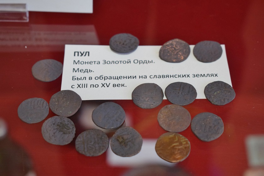 На уникальных вертикальных стендах, разработанных специально для проекта, можно рассмотреть купюры и водяные знаки на них с двух сторон. Увидеть мельчайшие детали печати помогут увеличительные стёкла. Здесь представлены монеты периода Золотой Орды, монеты и купюры времён русских царей и императоров, денежные знаки периода гражданской войны и СССР и, наконец, банкноты, которые были в ходу ещё совсем недавно, в 90-2000-е годы.