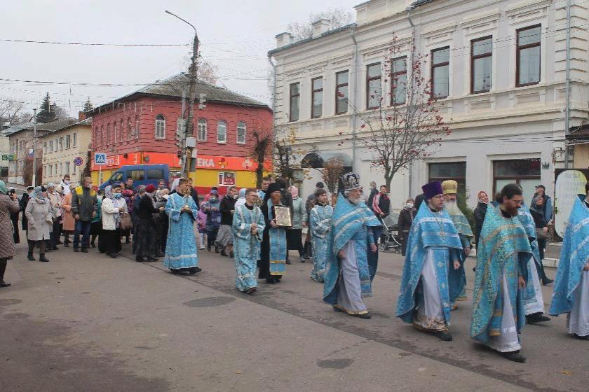 В сопровождении калужского и тарусского духовенства и благочестивых мирян процессия прошла через Соборную площадь к храму в честь святых первоверховных апостолов Петра и Павла. Образ Казанской Божией Матери бережно занесли в храм и выставили для поклонения верующим.