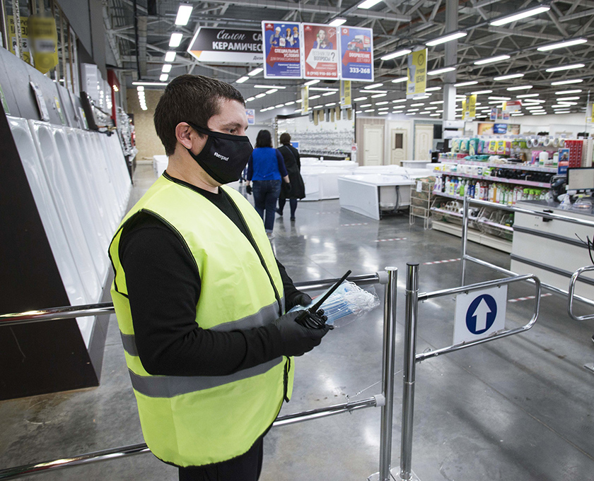 Последним объектом контроля для рейдовой бригады был гипермаркет «Глобус». Здесь строгости по отношению к посетителям никто не отменял. Да и сами посетители, судя по тому, что контролеры увидели в зале, чтут требования масочного режима.