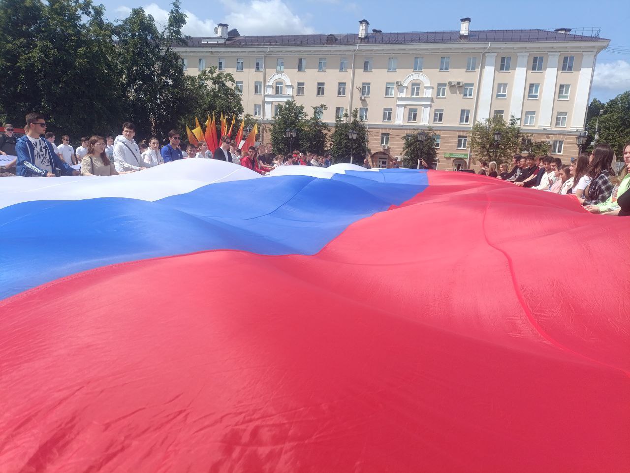 В областной столице продолжают проходить мероприятия, посвященные Дню России. Сегодня состоялся ежегодный флешмоб, в котором приняли участие активисты «Молодой Гвардии Единой России». На площади перед драматическим театром они развернули триколор и флаг регионального отделения партии «Единая Россия».