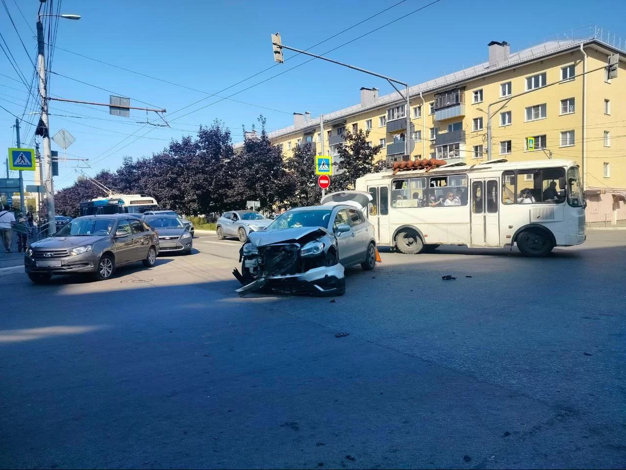 Из-за ДТП движение на перекрёстке улиц Тульской и Степана Разина затруднено.