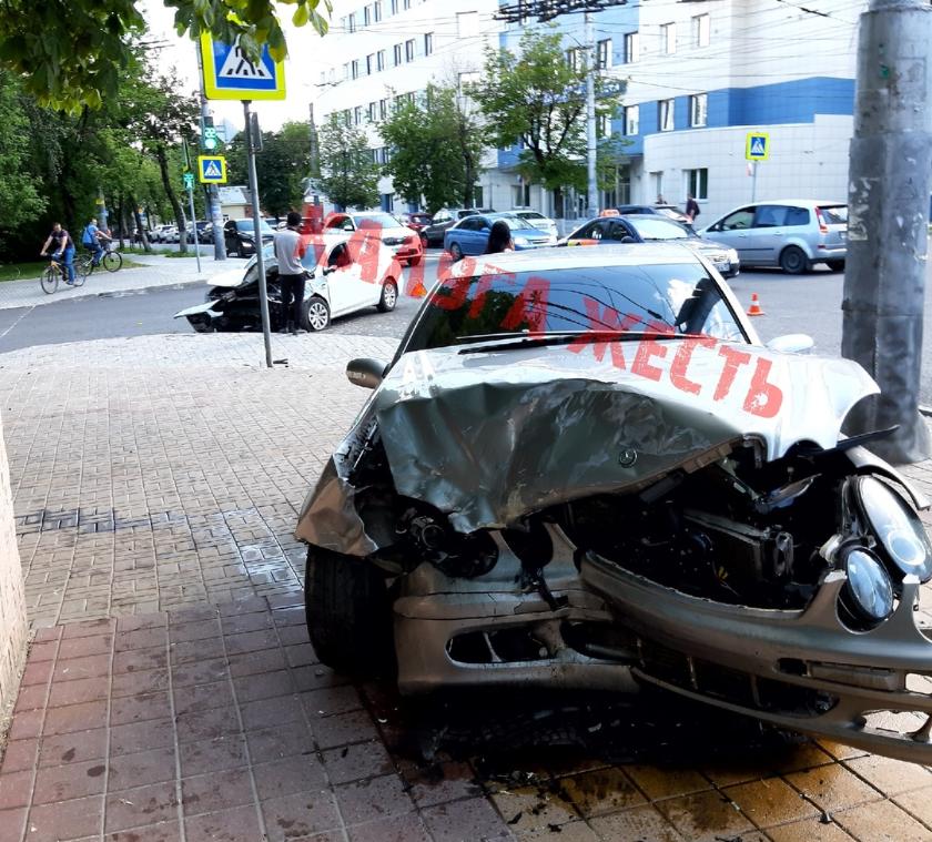 Очевидцы в социальных сетях пишут, что участники серьезной аварии не превышали скорость, и благодарят случай за то, что не пострадали пешеходы. После удара одна из машин вылетела на тротуар.