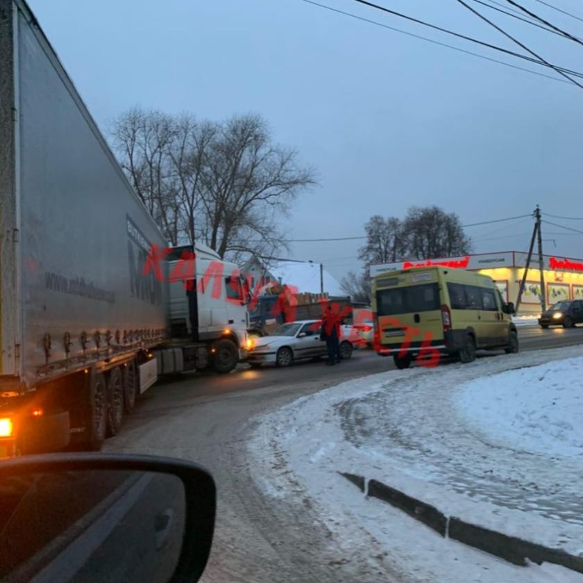 По словам очевидцев, столкнулись легковая машина и фура. Пробка стоит в обоих направлениях движения. О пострадавших не сообщается.