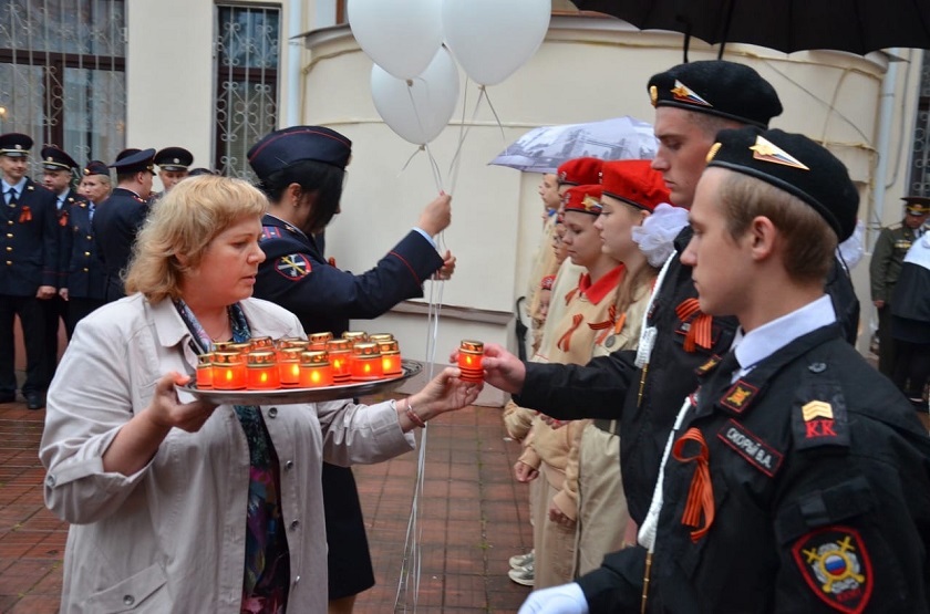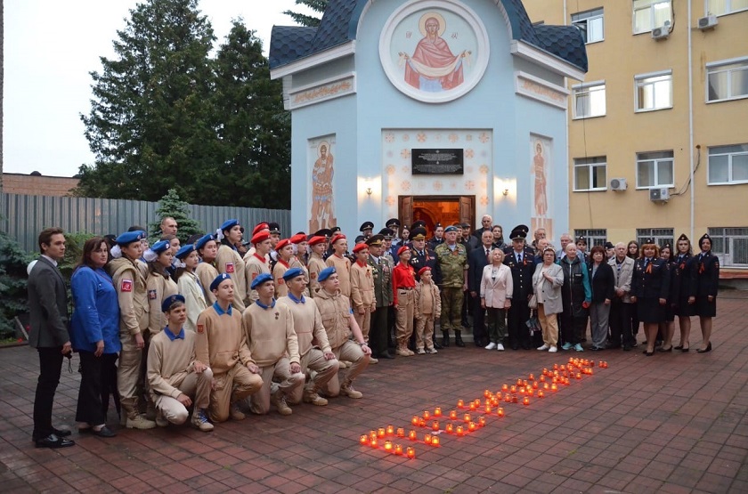 Ребята из Юнармии прочитали стихи, посвященные Великой Отечественной войне. После этого дети и взрослые зажгли свечи и выложили ими слово «Помним».