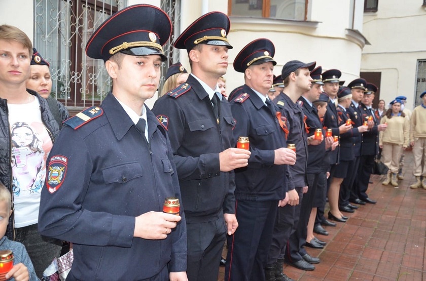 Участники акции почтили память всех погибших на войне соотечественников минутой молчания. В их честь прозвучали выстрелы траурного салюта.К гранитным плитам с именами сотрудников ОВД, погибших при исполнении служебного долга на фронте и в тылу, легли цветы. В небо взмыли белые шары с привязанными к ним бумажными журавликами.