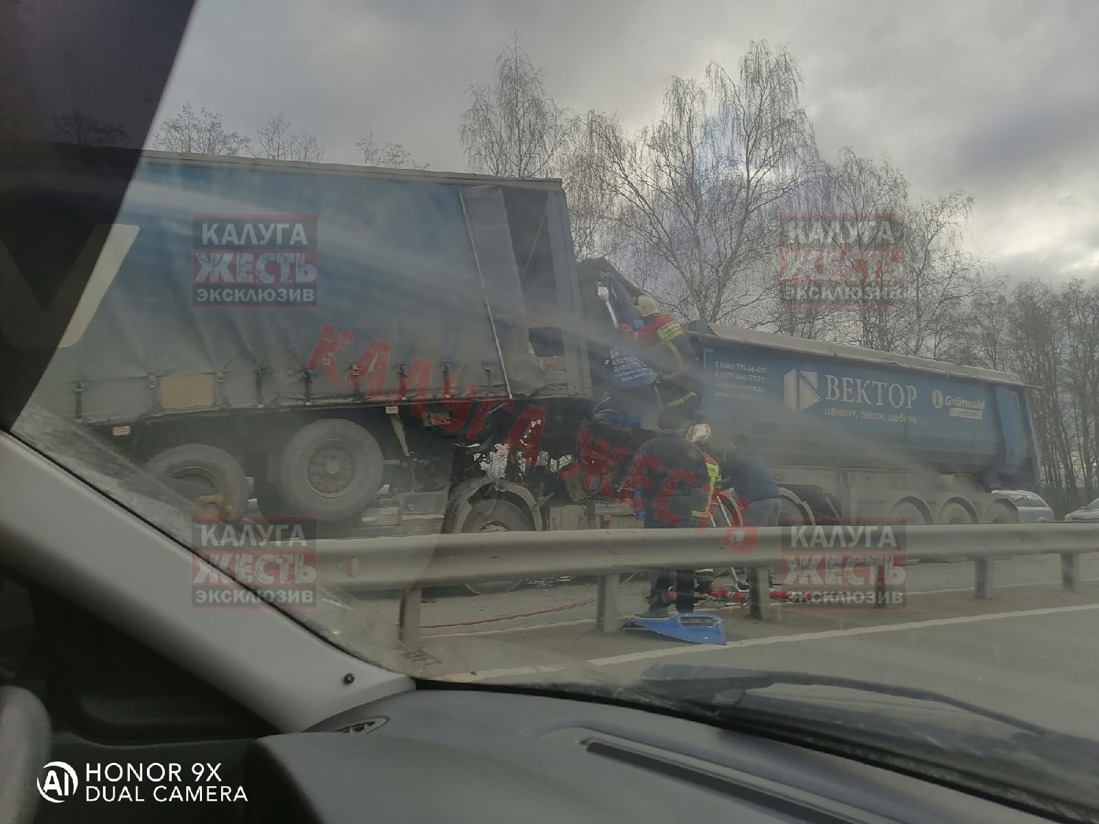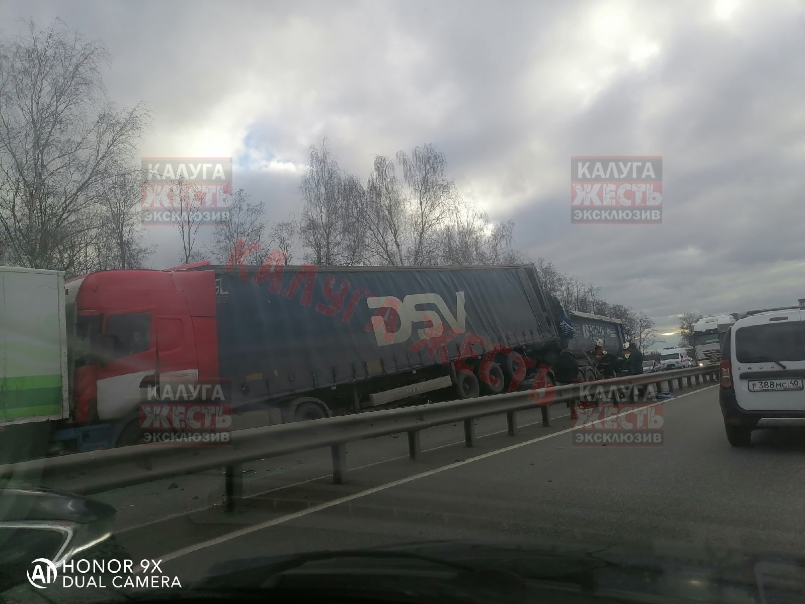 По предварительной информации, ДТП произошло около 12.20 часов на федеральной трассе М3 «Украина» по направлению в сторону Москвы. Большегруз, перевозящий сыпучие грузы, не успел вовремя затормозить и протаранил впереди идущую фуру, которая притормаживала возле светофора перед поворотом на «НЛМК». Удар был такой силы, что прицеп фуры подбросило и им смяло кабину большегруза. А фуру от удара протащило еще вперед, где она протаранила еще один небольшой грузовик. Тот в свою очередь протаранил еще одну фуру, стоящую перед ним.