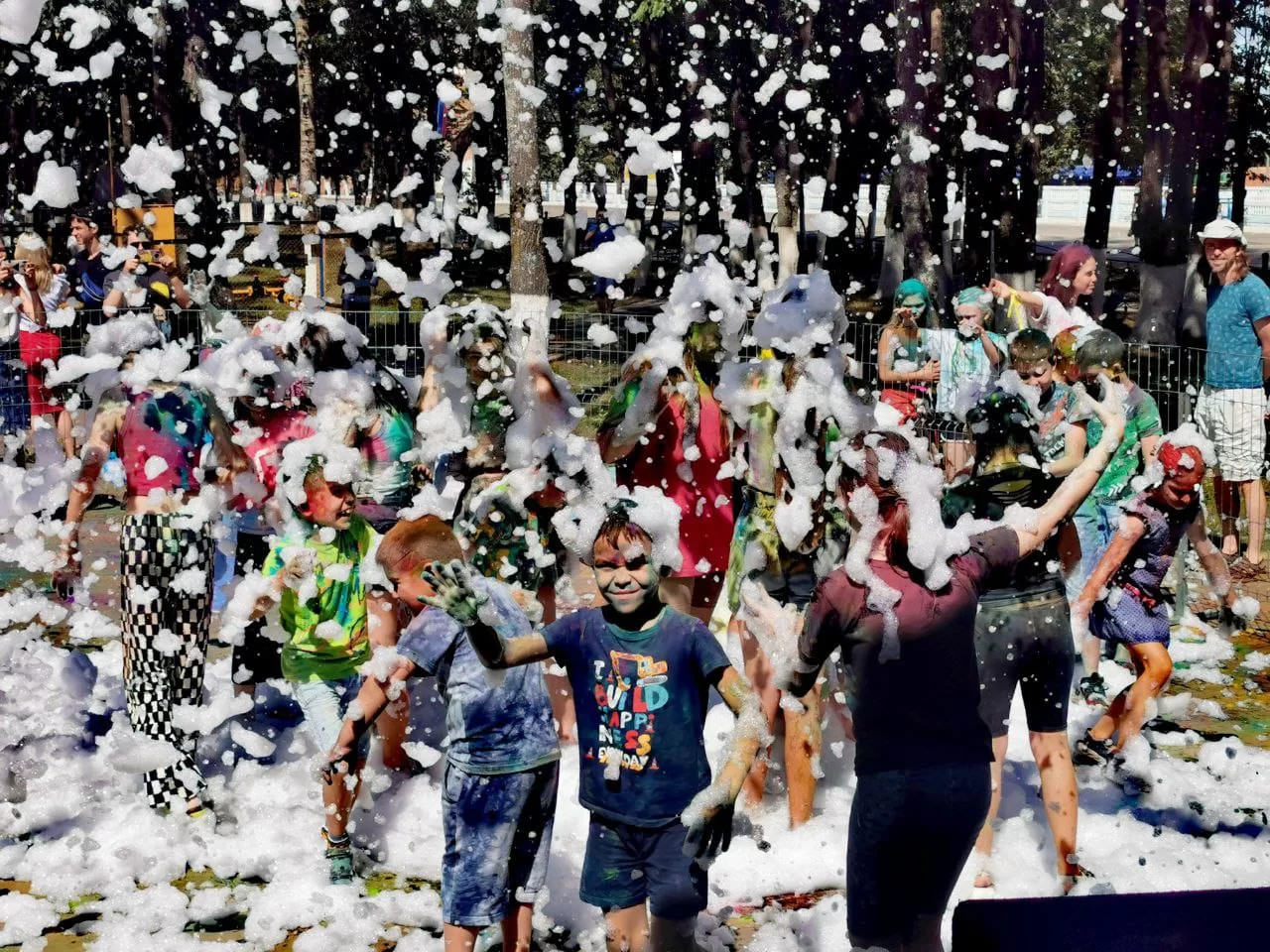С утра на городском стадионе проходили спортивные мероприятия. Ближе к обеду в центре города началась программа для детей. Шоу мыльных пузырей, мастер-классы, игры и конкурсы - вот неполный перечень того, что их ожидало в праздничный день.
