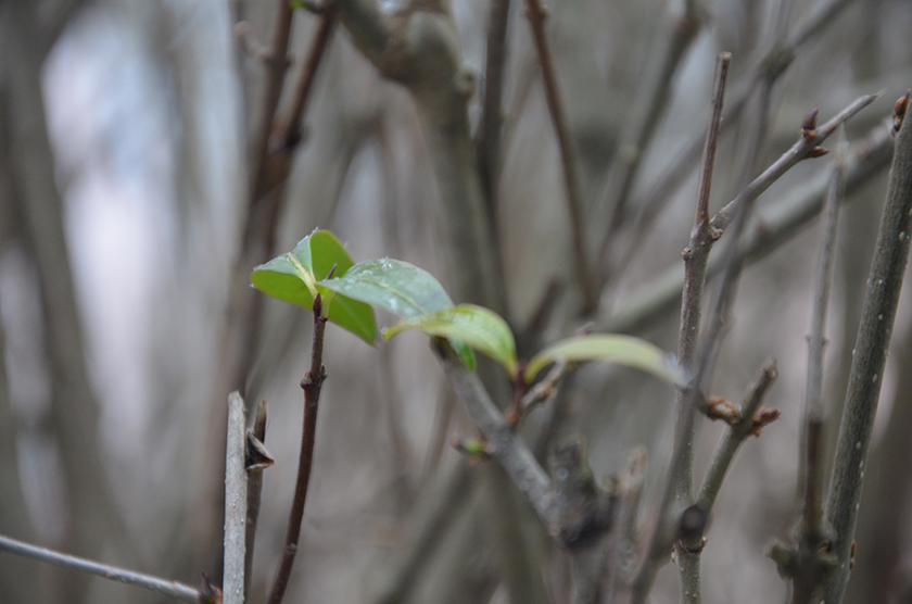 В конце минувшей недели в Юхнове на ул. Урицкого жители наблюдали и вовсе весеннюю картинку: на кустарнике около одного из домов раскрылись вот такие зелёные листочки. Клейкие и беззащитно-трогательные, по-майски светлые. Вот только на улице совсем не май. Сбился календарь природы со своей нормы. Растерялись и перепутали времена года цветы и деревья.