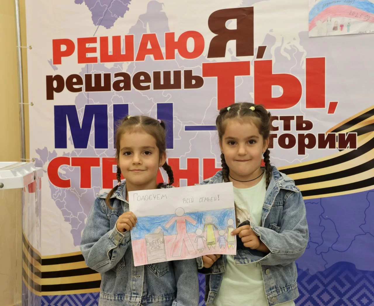 «»«Всегда ходим на выборы всей семьёй. Пусть и малышки привыкают. А в этом году они ещё и приготовили рисунок. Очень старались, важничали», - сказала Марина Сальникова.Автор новости: Наталья ИВАНОВА.