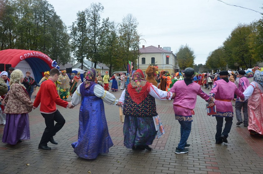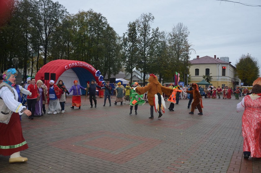 С восьми утра шла торговля сельскохозяйственной продукцией. Торжественная часть началась в десять с костюмированного парада сельских поселений. Затем был огромный покровский хоровод.