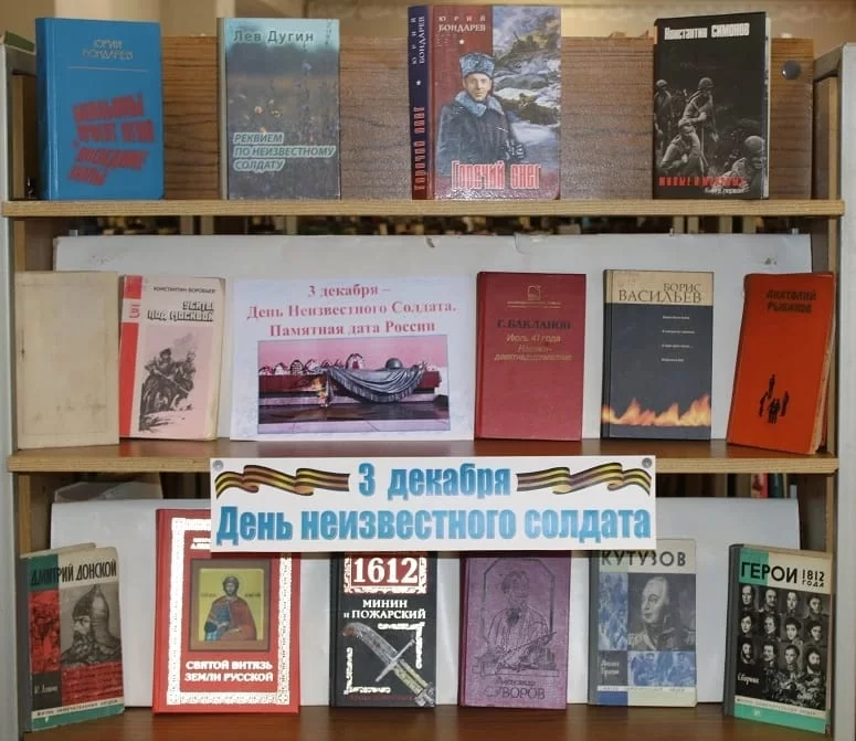 Библиотеки района подготовили мероприятия памяти для читателей, там прошли исторические часы «Имя твое неизвестно, подвиг твой бессмертен». Библиотекари рассказали об истории этой даты, читатели декламировали стихи, посвященные неизвестному солдату. В библиотеках прошли обзоры книжных выставок и просмотры тематических фильмов.