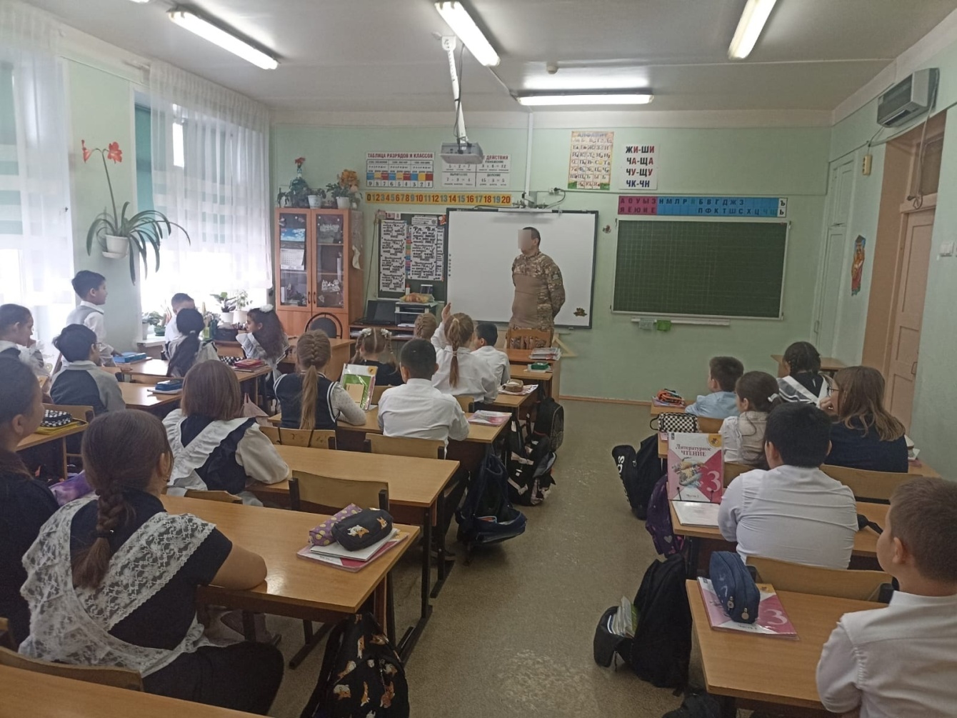 Боец поделился с учениками своим опытом и мыслями о важности спецоперации. Школьники с большим интересом слушали рассказ учителя о чувствах бойцов. Учитель особенно подчеркнул важность писем, которые бойцы получают от детей со всей страны.