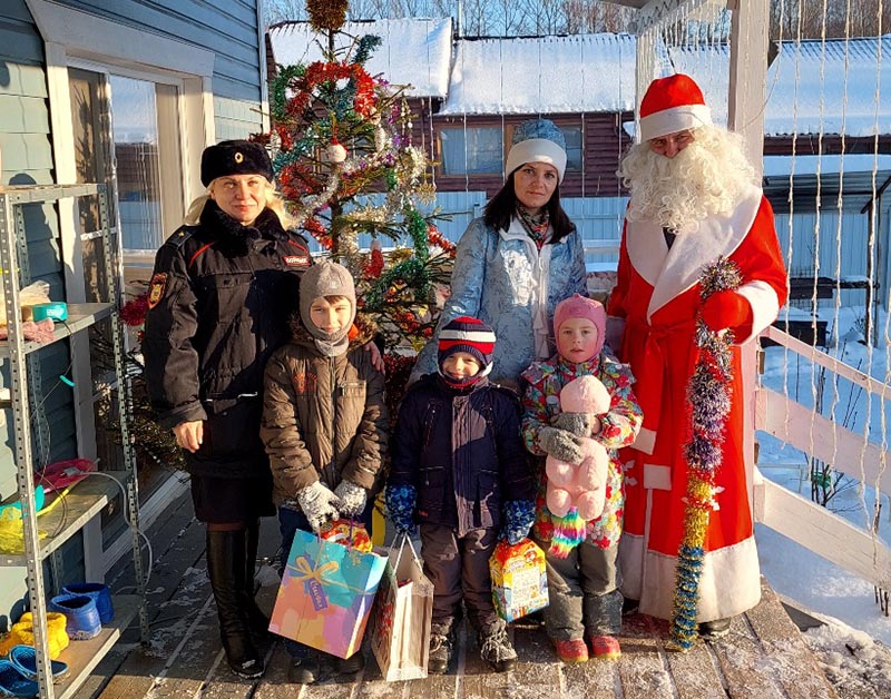 Полицейские Дед Мороз и Снегурочка подарили детям сладкие подарки, провели профилактические беседы о недопущении противоправных действий о безопасном поведении на дороге. Без внимания в этой акции не остались и семьи сотрудников полиции, к ним также приезжали особенные гости на патрульном автомобиле ДПС. Ребятам показали работу специального транспорта, дали возможность почувствовать себя юными полицейскими.