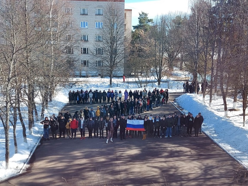 В городе Жуков Калужской области волонтеры Победы совместно со студентами «Колледжа механизации и сервиса» и членами Молодёжного совета приняли участие в акции в поддержку российских военных. Жуковская молодёжь выстроилась в большую букву Z с триколорами и георгиевскими лентами.