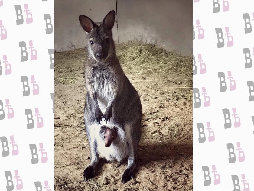 Кенгурята рождаются крошечными, длина новорожденного детеныша не более трех сантиметров, в течение полугода он растёт и набирается сил в сумке матери.Малыш стал вторым рожденным у пары калужских серых кенгуру, несколько лет у них появился детеныш-альбинос. Белый окрас является большой редкостью у этих животных.