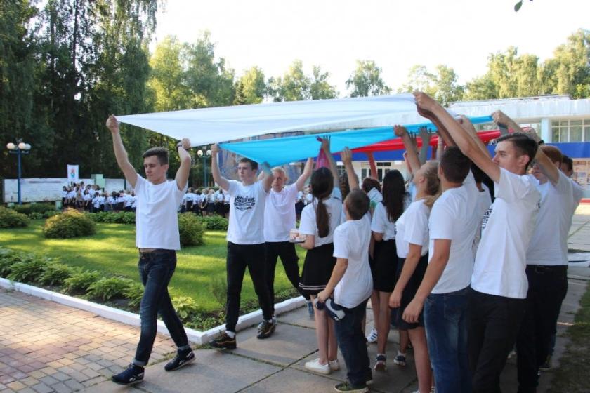 Ребята, отдыхающие в лагере, присоединились к общероссийскому празднику, проведя акцию «Триколор».