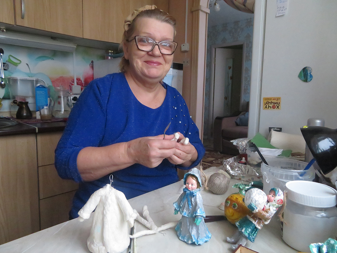 Олимпиада Афонина – человек творческий. Чем только она не увлекалась: декупаж, плетение из лозы, валяние из шерсти, шитье... В тяжелые и дефицитные 90-е Олимпиада Михайловна шила одежду для всей семьи, подушки и игрушки, позже научилась делать куклы в чулочной технике, освоила все тонкости изготовления бетонных садовых фигурок, часть из которых с весны до поздней осени украшает двор многоквартирного дома.– Разве что сварочные работы еще не освоила, но зять обещал научить, – смеется женщина. – Очень хочется попробовать сделать вазы и подставки под фрукты из проволоки.