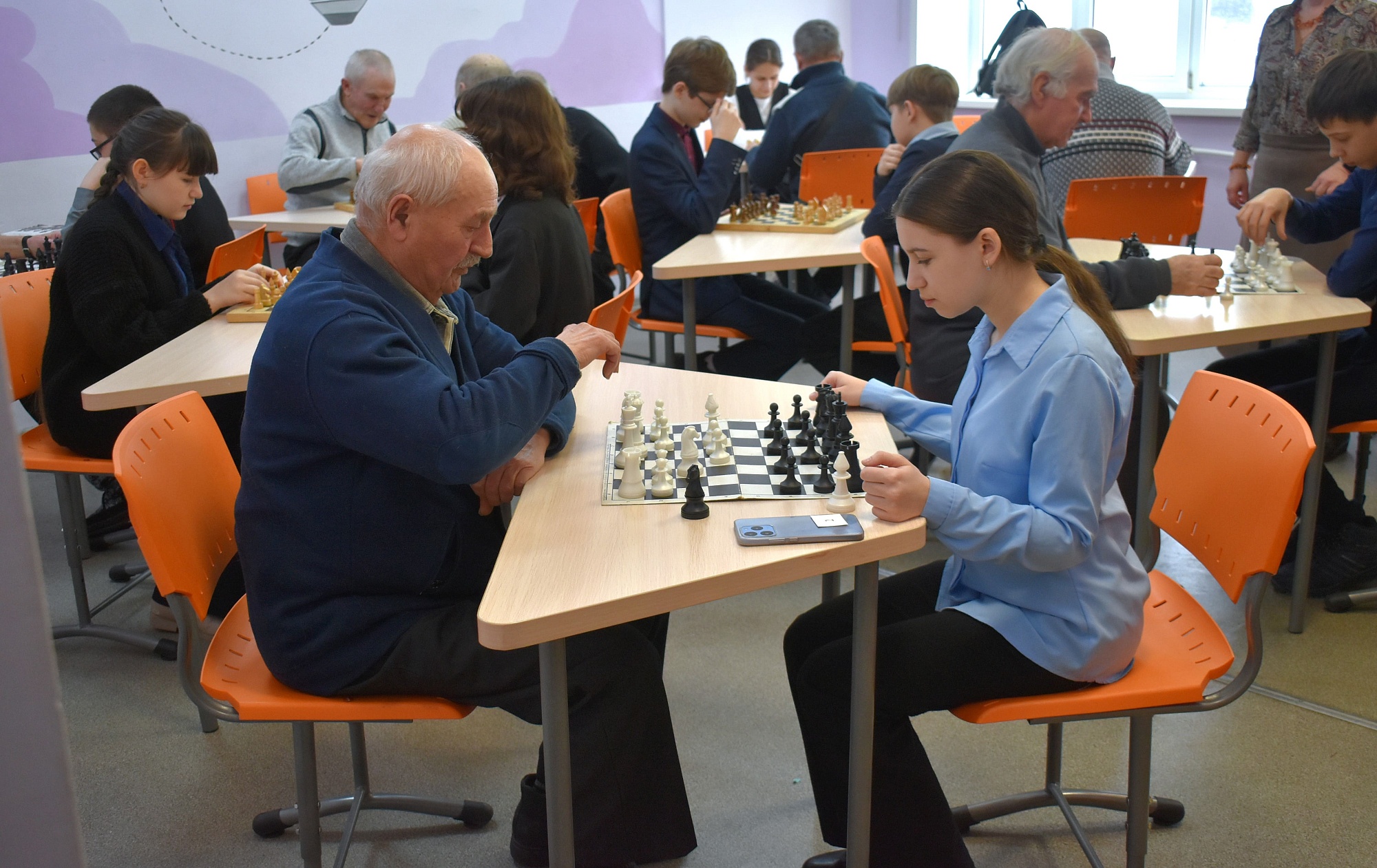В турнире играли девять на девять – школьники против старшего поколения. Соперников в шахматной баталии определила жеребьёвка. Играли по швейцарской системе: каждый, кто победил в первом туре, вновь проходил жеребьевку и играл во втором и т.д.